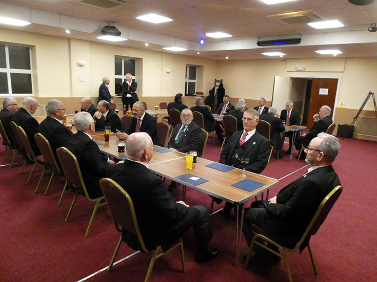 The Lodge was closed and the Brethren retired to the bar and onto the festive board for a buffet meal and lively conversation.