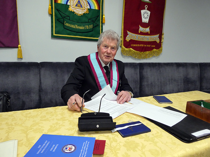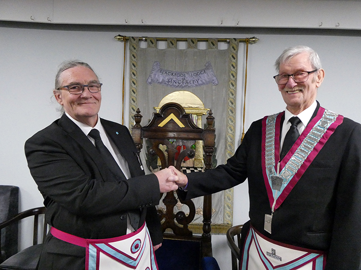 The WM worked through the business on the summons up to the Advancement ceremony when he asked WBro. Mark Brown to occupy the chair. | |