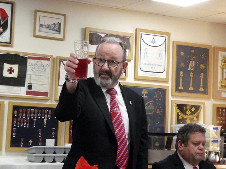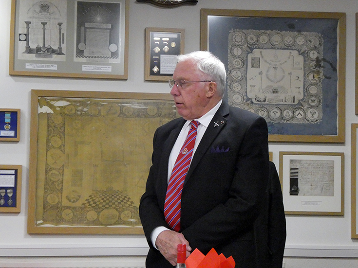 A eulogy was given for WBro. Brian Ogden, who had recently passed away, by WBro. Ray Lamb. The Brethren stood to order for a period of reflection for departed merit. | |
