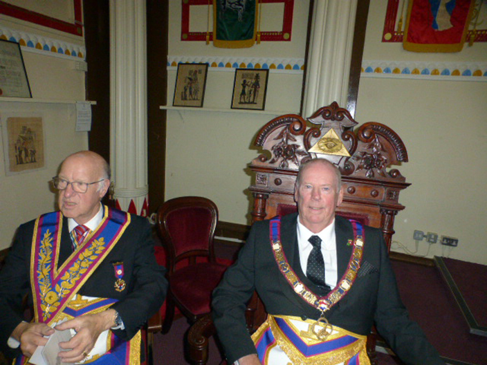 | Then it was over and time to dine and joining the members was a non-Mark Mason. It had been a very enjoyable meeting for all whose who attended. We wish WBro Ian Hayhurst a happy and successful year and he does have work to do at the February meeting. | |