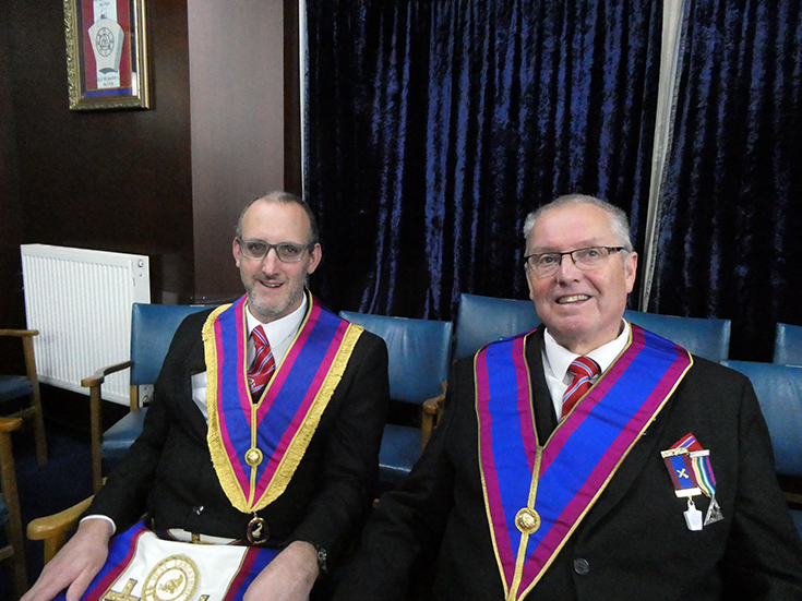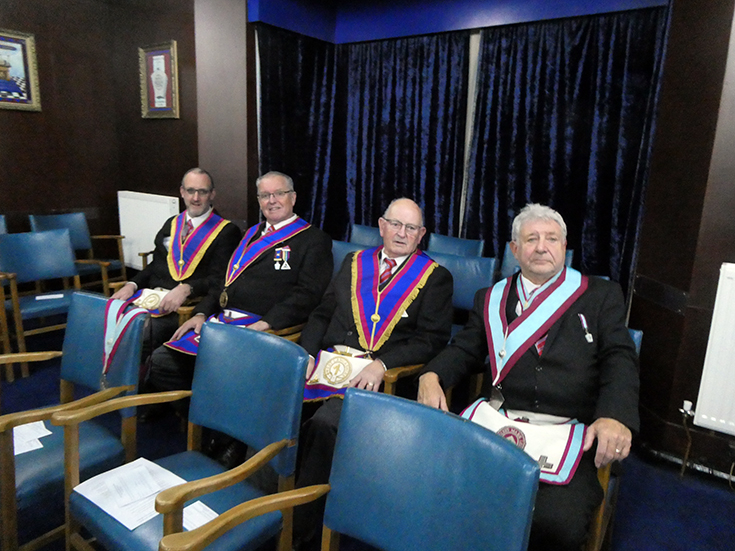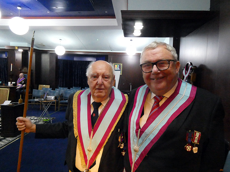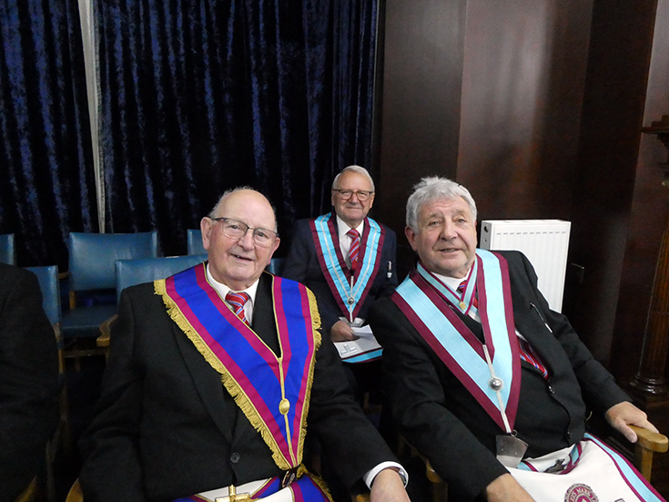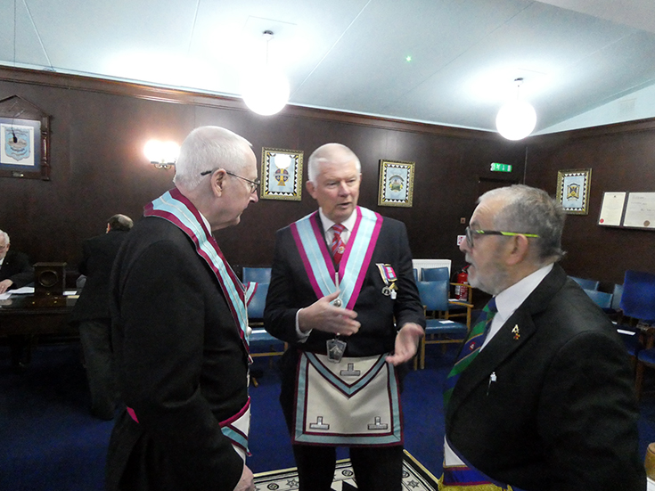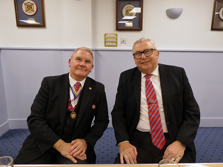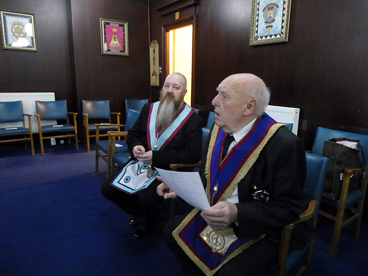| The WM worked through the business on the summons, which included the ballot for two joining members; WBro. Shaun Haynes PAGStB and Bro. Steve Willingham, both members of Imperial Mark Lodge. The ballot proved in favour and both Brothers were welcomed into the Lodge by the WM. | |