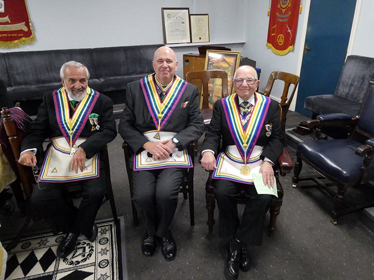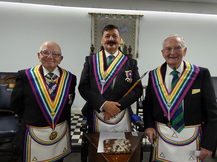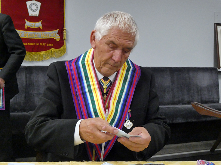 | Salutations were given to the RWPGM under the direction of WBro. Dean, for which he thanked the Brethren and then to WBro. Bob McGown and the holders of RAM Grand Rank, who thanked all the Brethren for their kindness. | |