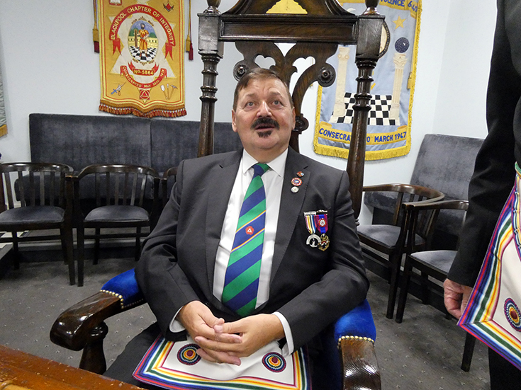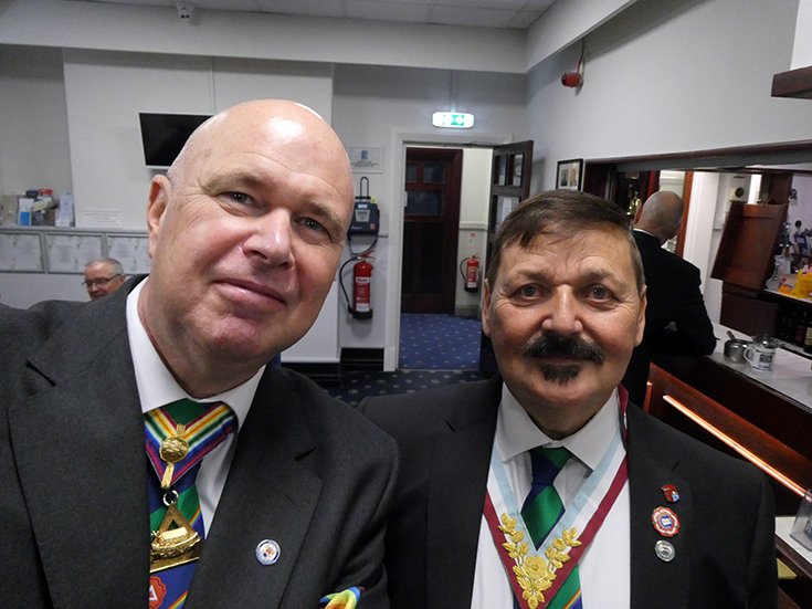 | Bro. Steve Smith, (a member of Edmund Taylor RAM) the recently installed SW of Mount Cardo Lodge of RAM No. 1920, based in Lanzarote, brought the greetings of the Commander of the Lodge and said that he would hopefully be installed as Commander next year and all were welcome to attend! | |