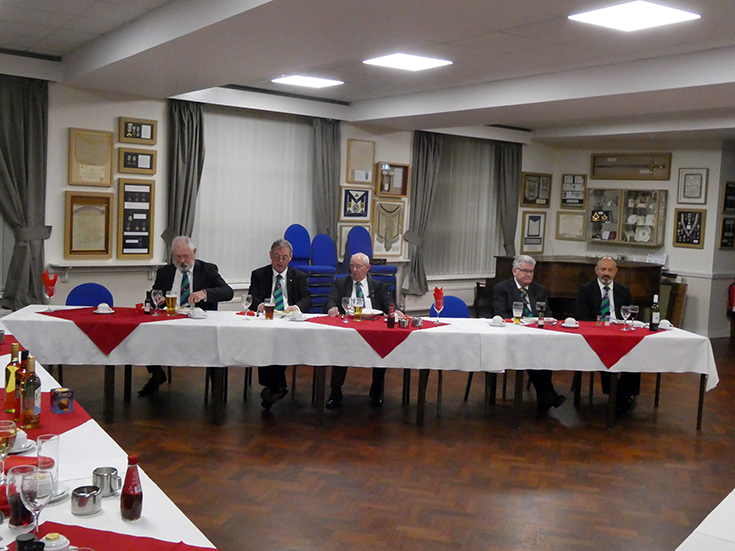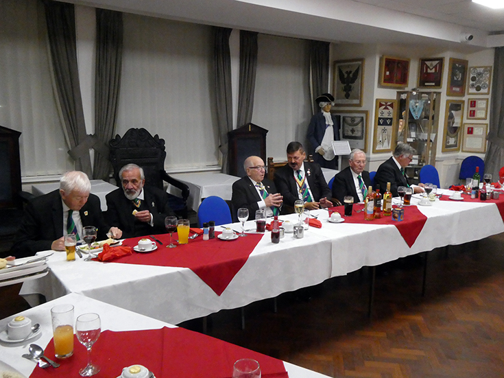 | The Lodge was duly closed and the Brethren retired to the bar area and onto the festive board, which was lively with good food and banter, which was thoroughly enjoyed by all present! | |