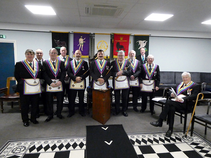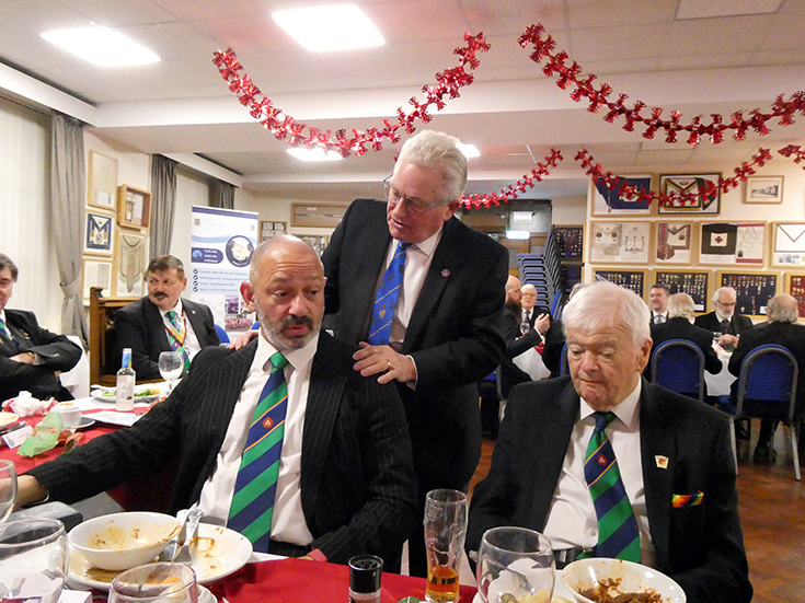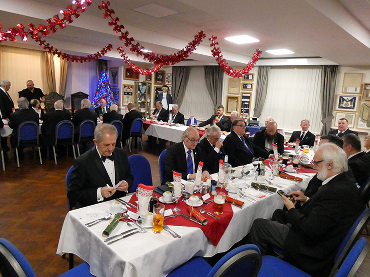 The Lodge was closed at circa 19.15hrs and the Brethren retired to the bar for refreshments, prior to joining St. Johns Lodge No 2825 for a joint festive board. The WM being WBro. Bob Bennett, also a member of Edmund Taylor RAM.