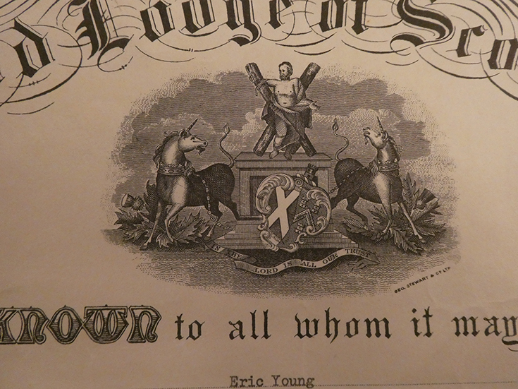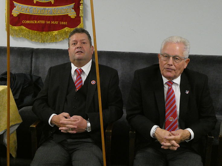 Upon completion, two certificates were presented to Bro. Eric by the DepPGM; one from Grand Lodge and one from Provincial Grand Lodge, to mark his 50 years in Mark Masonry. | |
