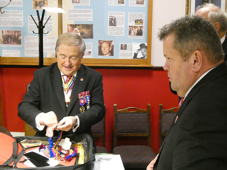 The RWPGM entered the Lodge with distinguished Brethren and was offered the gavel by the WM. The RWPGM returned the gavel stating that he was there to enjoy himself and not work on this occasion. | |