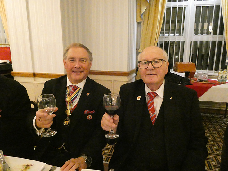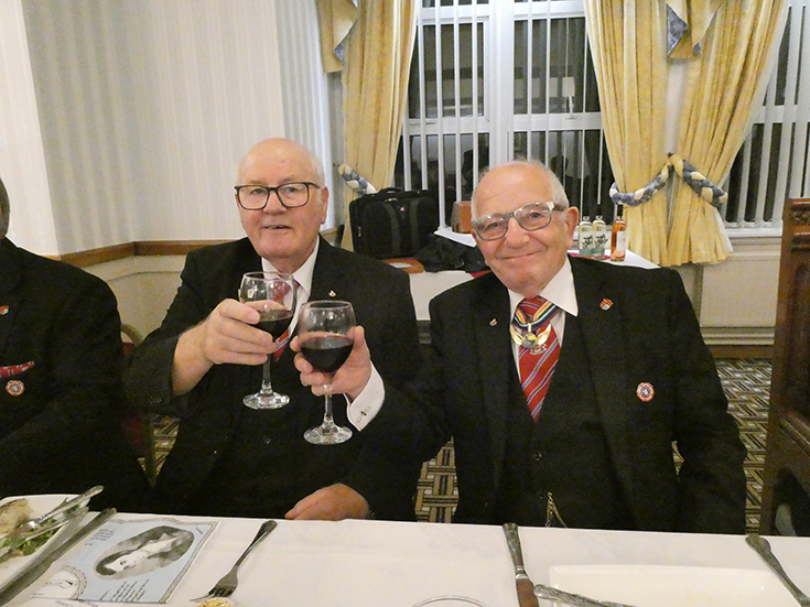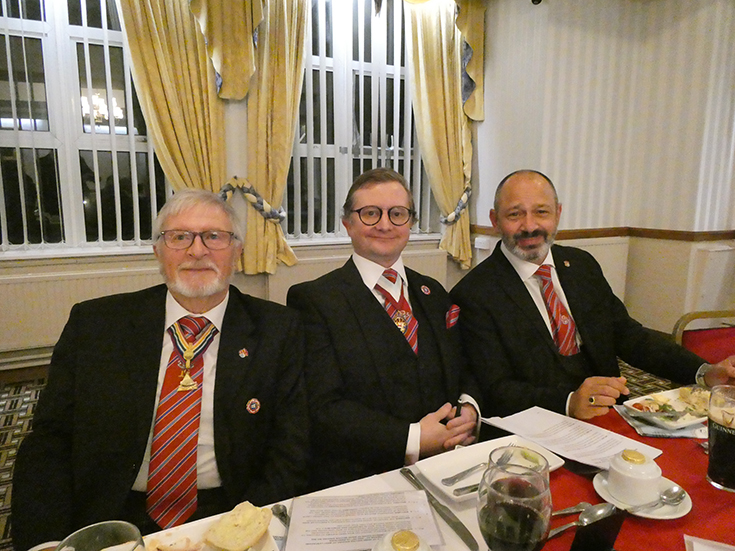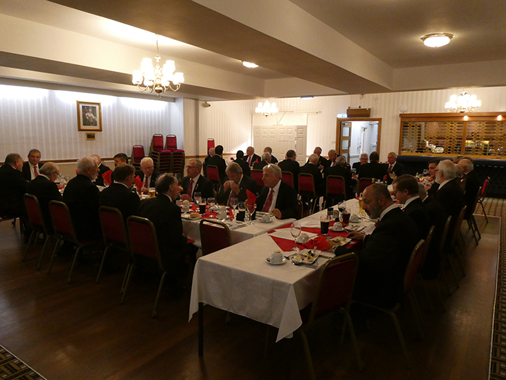 The Lodge business was completed and was closed by the WM. The Brethren adjourned to the bar and quickly onto the festive board for an excellent meal accompanied by a great atmosphere and the customary Mark craic! | |