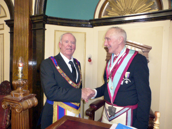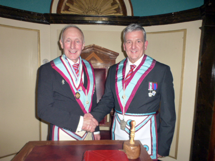 | After the ceremony WBro Povey brought congratulations from the Provincial Grand Master to WBro Alan Ray on taking the chair for the first time and to WBro Alan Ray for a fine ceremony. Before WBro Povey sat down; the WM presented him with two cheques for Charity. These were gratefully received and will be faithfully applied. During the risings WBro Steve Walls presented a Grand Lodge Certificate to Bro Myran Anduyan. | |