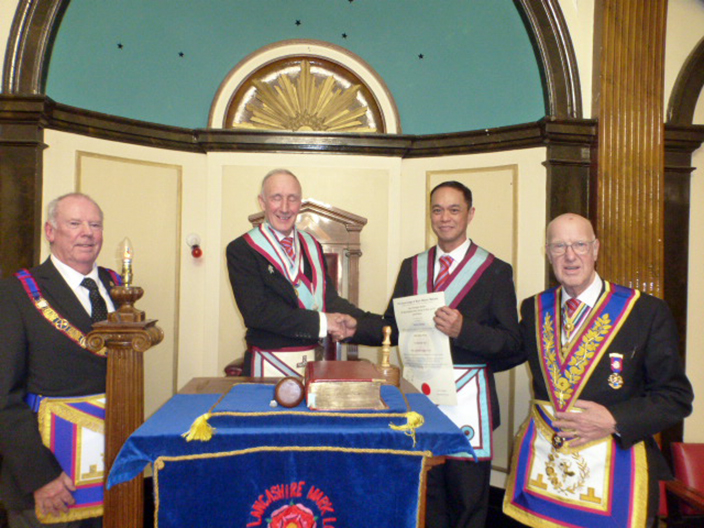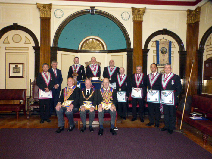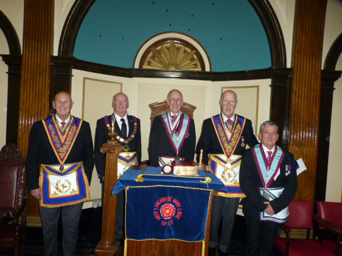 | The sky over the City was filled with rockets and star bursts while West Lancs 65 Mark held their Installation meeting at Liverpool Masonic Hall. Mind you, the fireworks could have been because it was bonfire night? One can dream. |