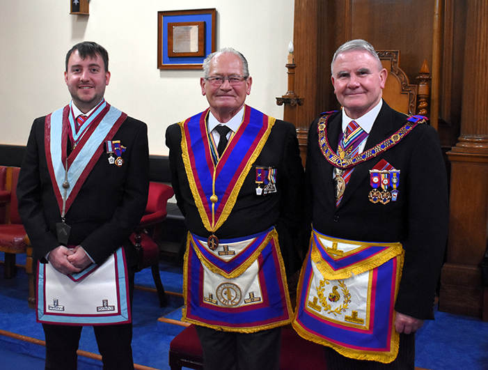 The principal guest at the meeting held in Rowley Court, Lancaster was APGM Mike Pinckard. He was able to observe Peter install Ian Stokes as his successor in an excellent manner. It was a hat-trick for Ian as it was his third venture into the chair of the lodge. | |