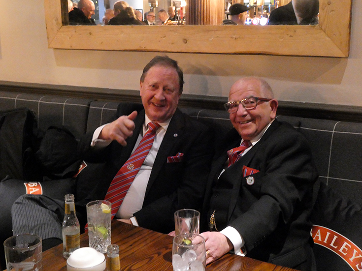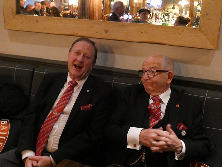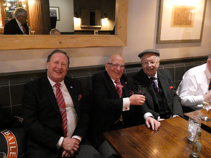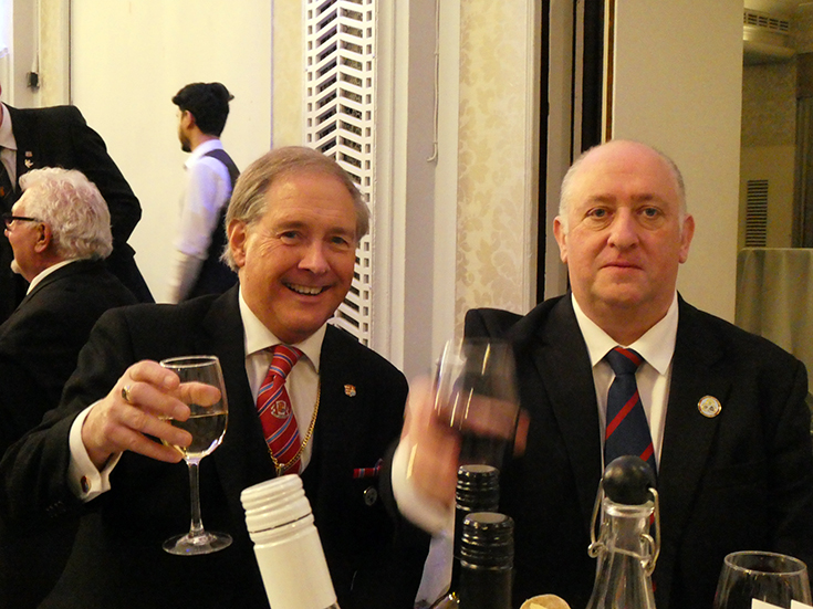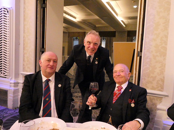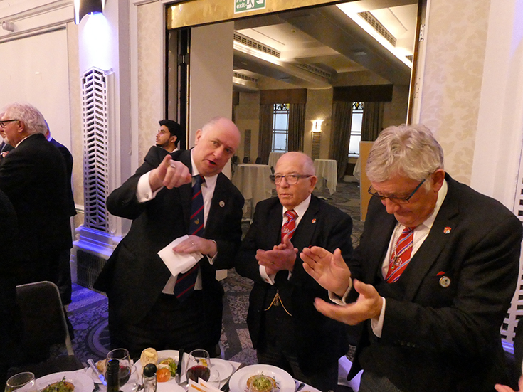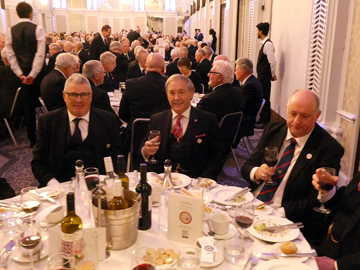 The meeting was closed and everybody, including the non-Masonic guests, retired to the Grand Connaught Rooms for dinner, entertaining conversation and a good deal of banter. | |