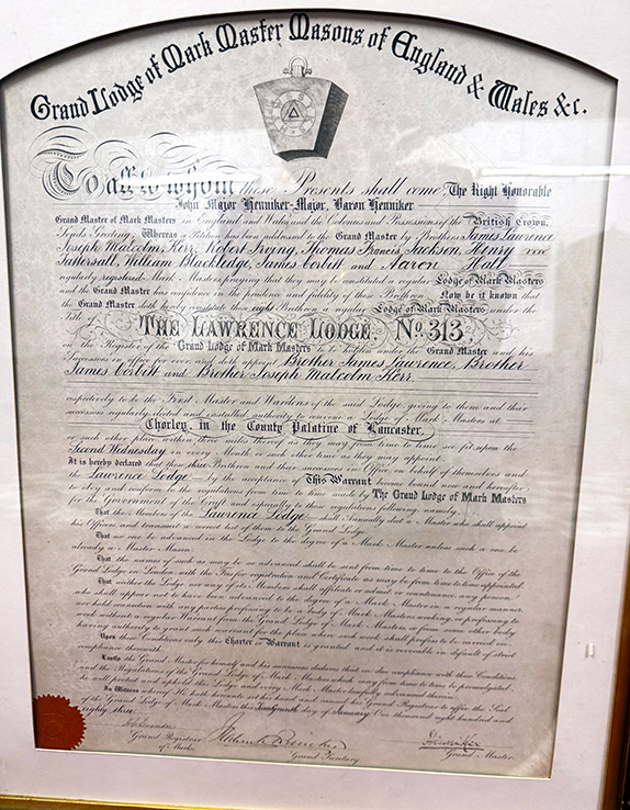 The Lawrence Lodge of Mark Master Masons. No.313 Installation Meeting. Thursday 20th November 2025 The Masonic Hall, Cunliffe Street, Chorley. 6pm |