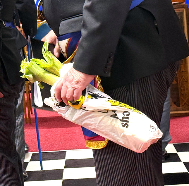 | Before retiring Keith congratulated the W.M. on an excellent Ceremony and wished him and all the members of the Lodge a Happy and Healthy year ahead, perhaps with a candidate or two, in reply the W.M. was pleased to present three cheques for Charity, £150 for WLMC, £150 for St Catherines Hospice, £150 St Lawrence and £100 to the Chorley and Leyland Food Bank. Following the Team retiring from the meeting, a few more items were dealt with and that was it. The Lodge was closed in due form before everyone made their way to the dining room, charged their glasses and took up their allotted seats for the Festive Board. | |