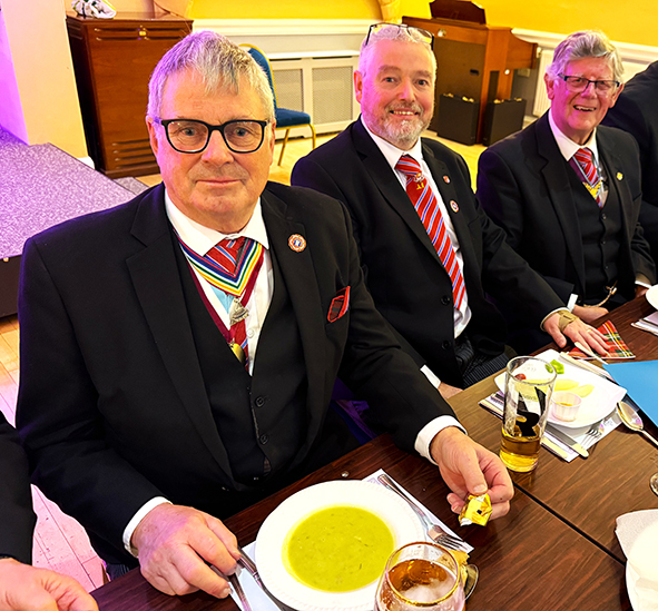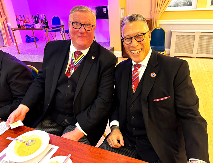 | A delicious meal was served by the friendly and very efficient Hall Staff, the usual Toasts and responses followed, unfortunately I had to leave early and missed the PGM’s much awaited joke, which I’m sure received much applause. I’m already looking forward to the next meeting, now I don’t have to guess that everybody said their genuine goodbyes with the unique handshake of friendship we all share. | |
