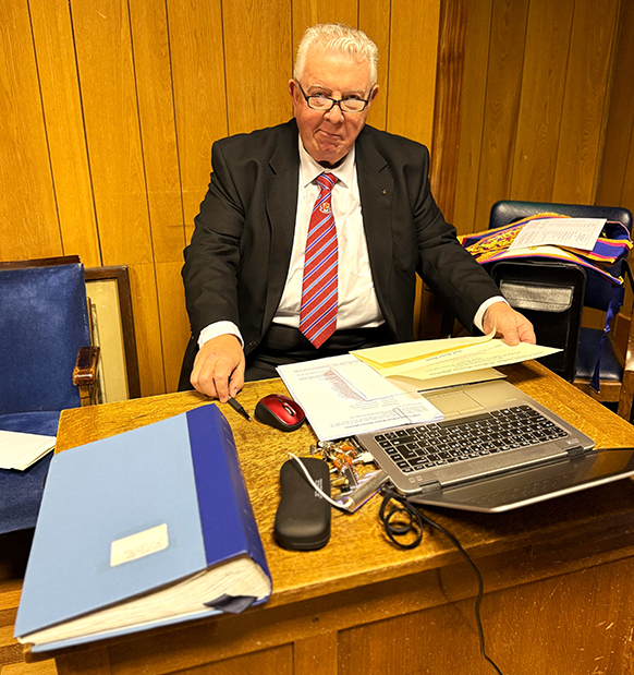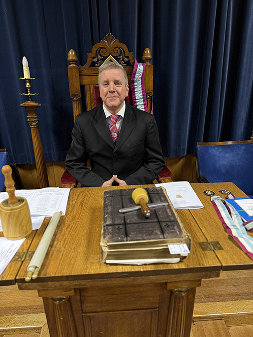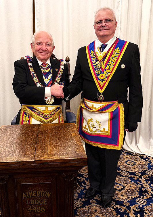 W.Bro. Gordon Glover PPrGJW proclaimed Bro William Robb Master of Leigh Lodge of Mark Masons No. 1322 on the register the Grand Lodge for the ensuing year. | |