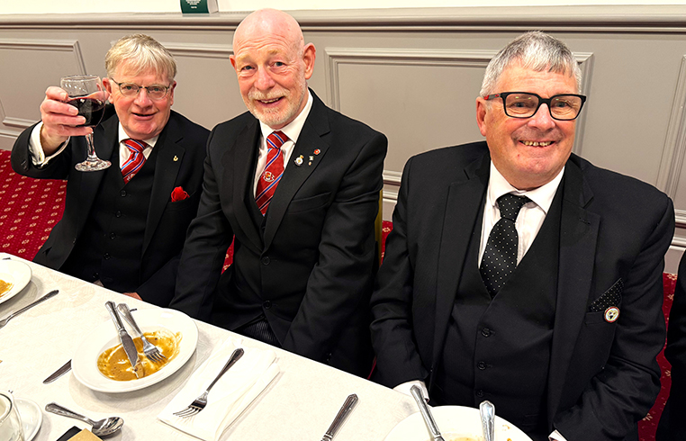 All that’s left to say is, here’s looking forward to the next Merry Mark Meeting and a note for your Diary, Provincial Grand Mark Meeting, Thursday 8th May at the Winter Gardens, Spanish Hall, Blackpool, look forward to seeing you there if not before. | |