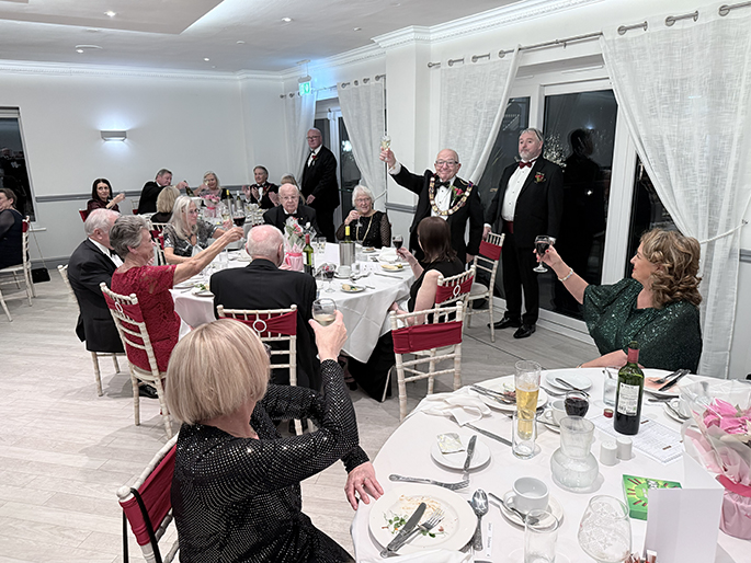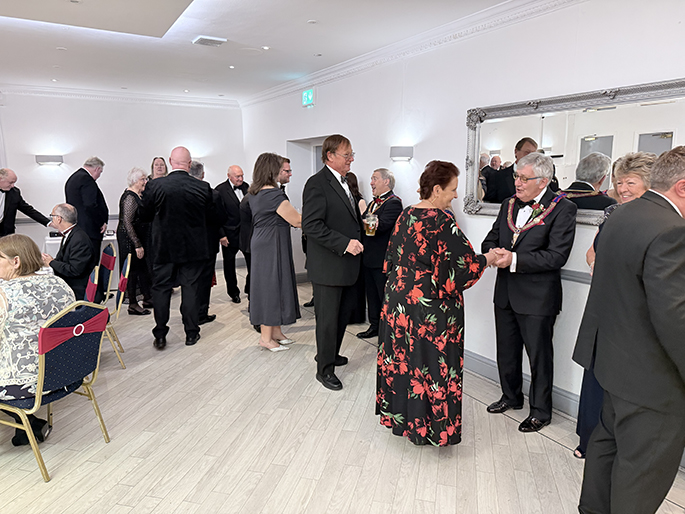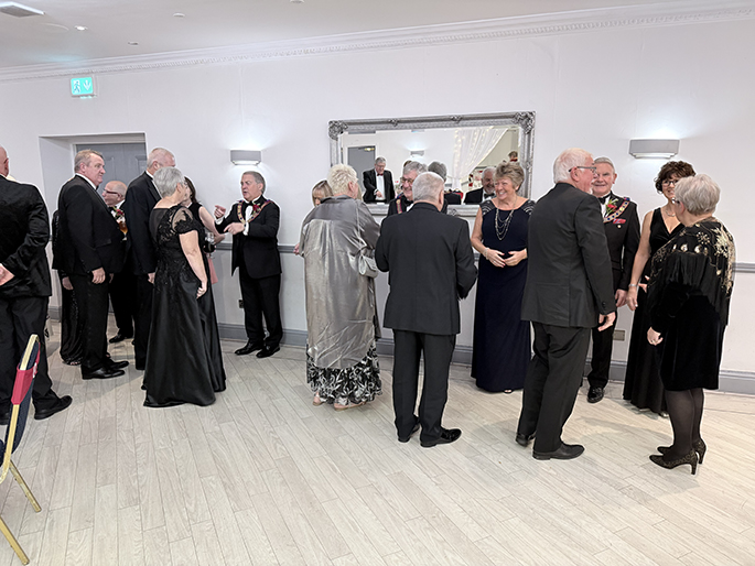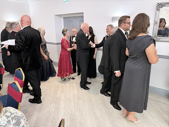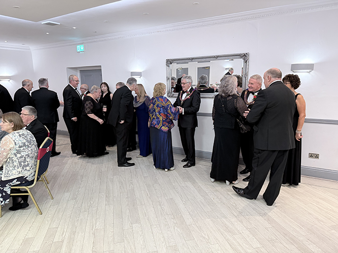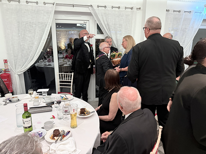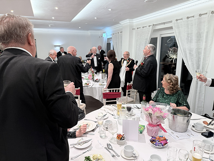 | After entering the banquet suit, the Provincial Grand Master formally welcomed the assembled audience ahead of a superb meal, and plenty of liquid refreshment. | |