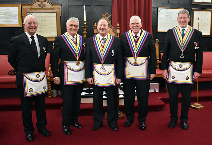 Senior deacon Frank Heath performed to his usual high standard as he conducted Steve throughout the proceedings. He was ably assisted by junior deacon Malcolm Brown. | |