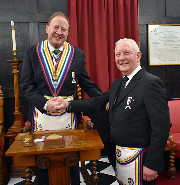 Worshipful Commander Paul Broadley undertook the task of elevating Steve in what was a very pleasant ceremony. | |