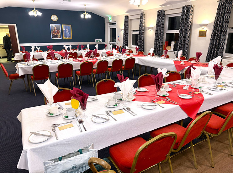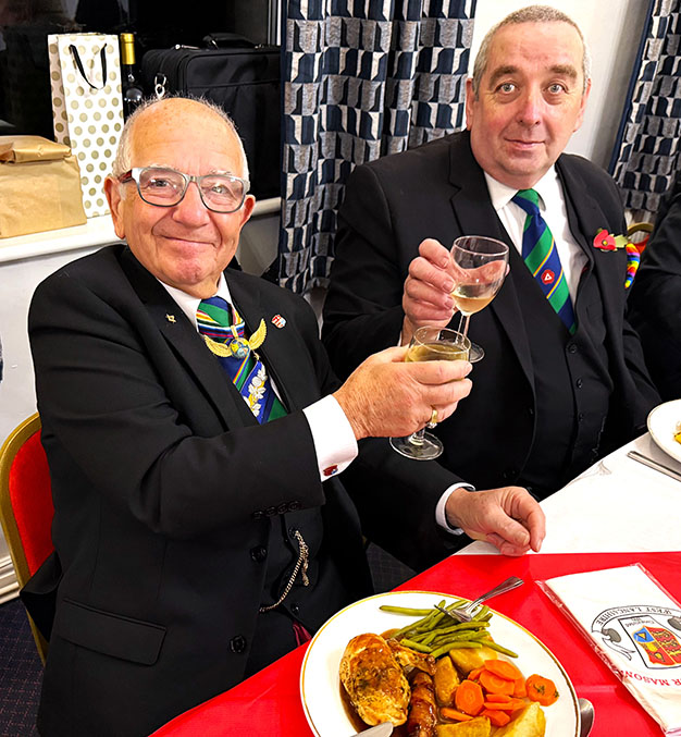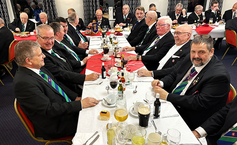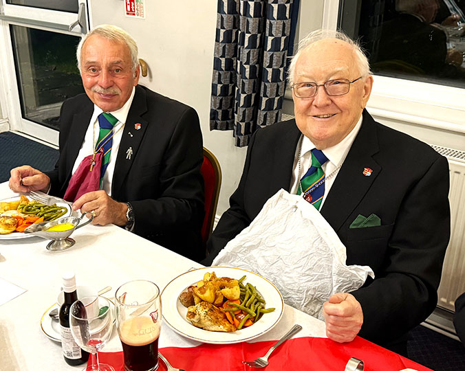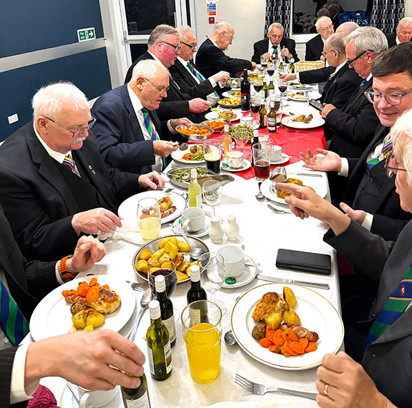 | An excellent meal was served by the very efficient and friendly Hall staff, I notice the Chef a really nice guy keeping an eye on proceedings, the usual Toasts and some excellent responses followed. A large raffle for the Charities was taken and sadly once again another meeting was over. Everyone gathered to say their goodbyes with a smile and once again with our genuine handshake of friendship we all share, then it was off into the dark, cold night at least our hearts were warm from a meeting to remember. Special Thanks to Roger the Scribe and Les the Treasurer for the help and communications. Here’s looking forward to the next one. | |