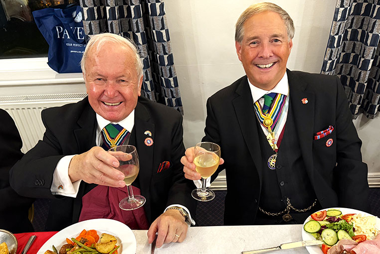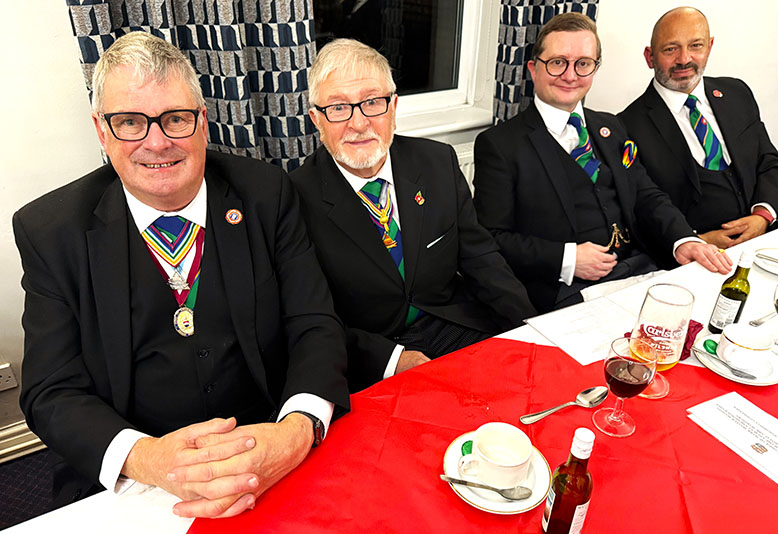 | All the members of the Lodge greeted us with a smile and the genuine handshakes of friendship we all use, lots of chat and memories old and new from all parts of the Province, our PGM Keith always joins in which catches some by surprise because as we know our leader has a genuine heart and is happy to chat with anyone a genuine person now this doesn’t happen in some parts of the Country/Provinces. | |