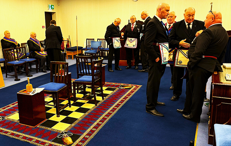 | The meeting commenced on time at 5.30 pm and following several housekeeping items the PGM RW Bro. Keith Alan Beardmore G.M.A.C. entered accompanied by Acting Grand and Provincial Grand officers, he was presented to the W.M. who welcomed him into the Lodge on behalf of all presented. The gavel was offered to Keith who said he would accept it on this occasion for a short time so as to introduce the members of the team to everyone, once this was done the Lodge W.M. resumed his seat. | |