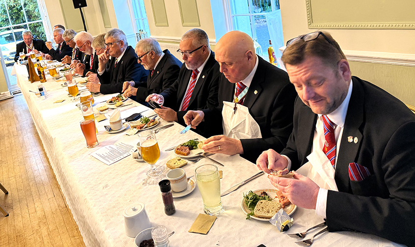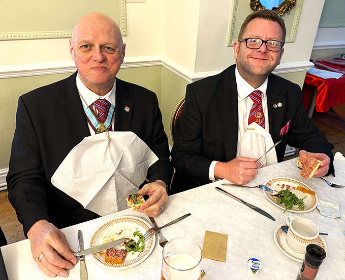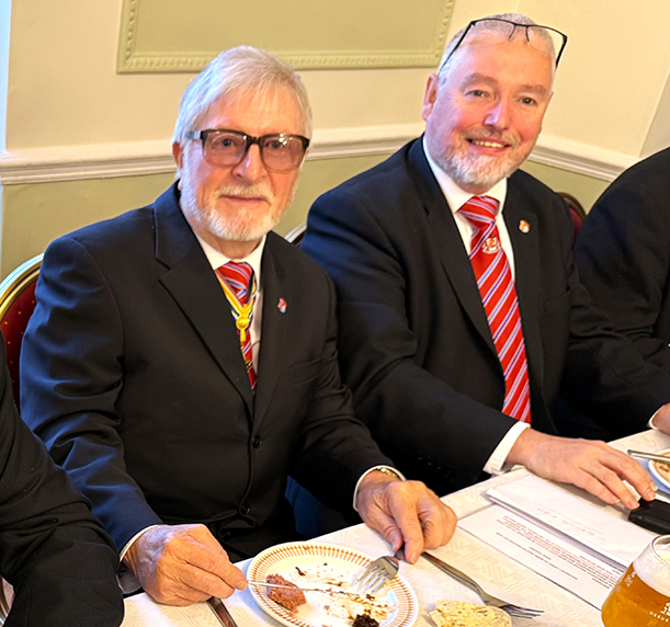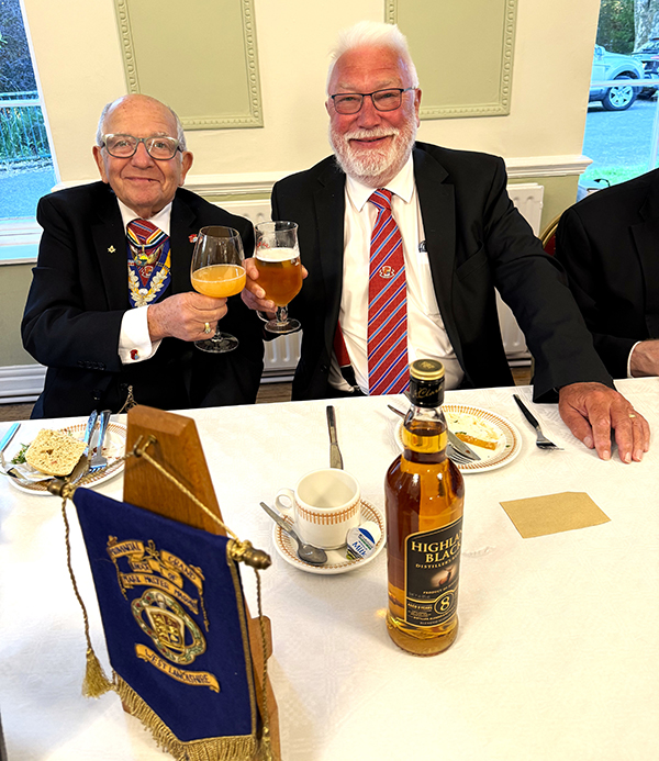 It was now time to congratulate the newly Installed Master, he was wished good health for his year in office and that the Lodge would enjoy the year ahead with maybe a couple of new Candidates. At this point usually a cheque for the Charities is handed over but, on this occasion, the W.M. John seemed quite embarrassed to inform Keith that the Treasurer couldn’t find the Cheque Book!! He did say however that one would be arriving shortly in the post. (phew) | |
