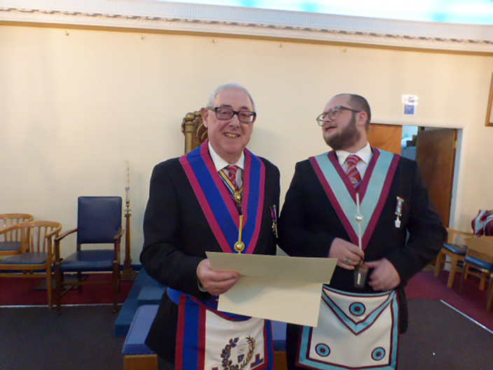 During the first rising VWBro Maurice Evans, presented a Grand Lodge Certificate to Bro Lee Need. With the Lodge closed it was time for an excellent festive board. | |