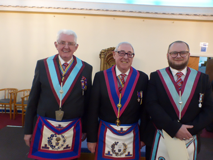 WBro Cliff Boynton was declared Master Elect; and WBro Graham Radford was declared Treasurer. VWBro Fred Hargreaves then presented an informative and entertaining lecture on the formation of the modern-day Mark Degree. This included the fact that in Scotland the Mark Degree is still seen as part of the craft in Scotland you cannot join the Royal Arch unless they are members of the Mark. | |