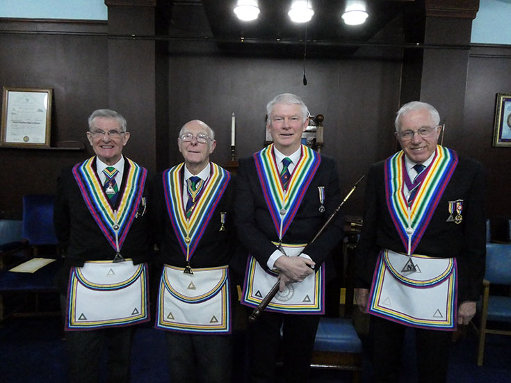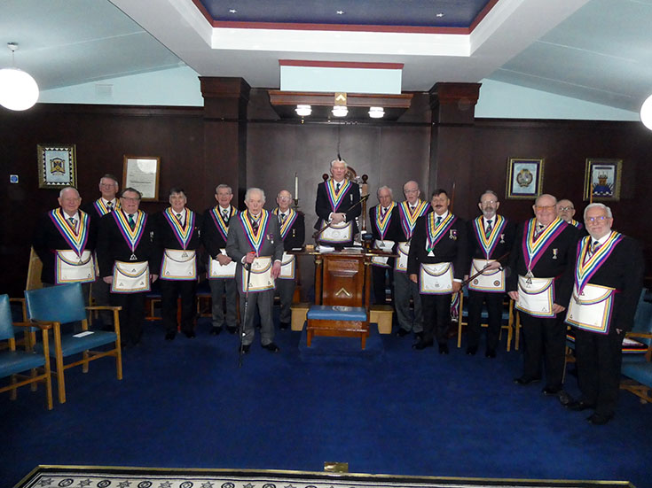 16 Brethren were present for the meeting, including WBro. Steve Clark ProvRAMGR, who was rejoining the Lodge. Bro. Alan Barnes, Commander of Edmund Taylor RAM No 296 was also present.