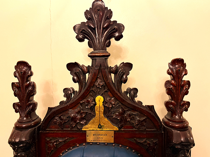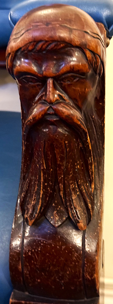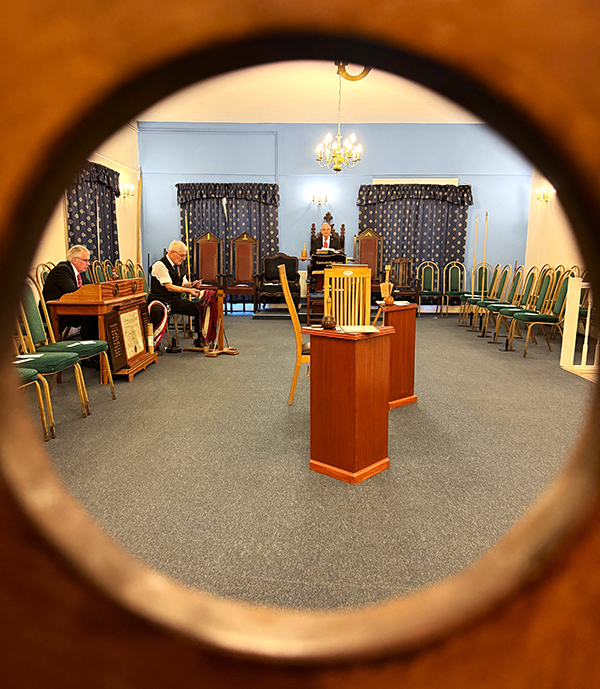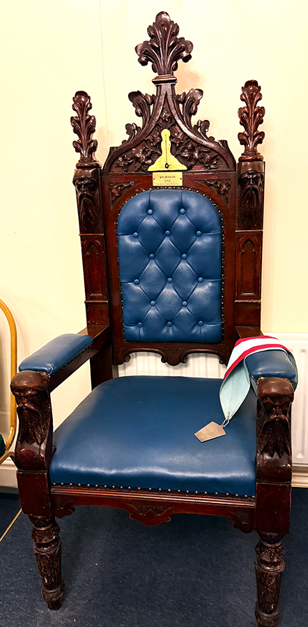 Took a few pictures outside, even though the sun was disappearing, but still the golf course looked in excellent condition, once inside the building I found it was as usual buzzing, lots of activity around the bar, along with the usual friendly chat from all around the Province. I set off for a mooch around the building, the Lodge room which is upstairs is very interesting, the door for entering is as usual to the left of the SW’s pedestal, but there is also a short flight of stairs going down to a small door to the right of the JW pedestal, now that is unusual, but it in no way detracts from the very pleasant Lodge room. Of note are the principal officer’s chairs which have beautiful carved heads on the arms and are really interesting.