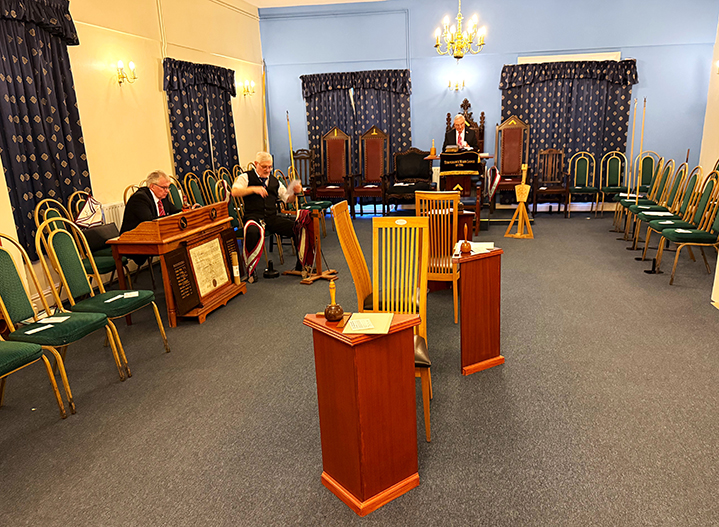Once this was done the Gavel was handed back to the W.M. W. Bro. Robert L. James who then continued to open a Board of Installed Masters and proceeded with the help of Lodge Past Masters to Install Bro. Steven Cornwell into the chair of Adoniram, he then presented the Warrant of the Lodge, the Book of Constitutions and the Lodge Byelaws.  All in a First-Class Installation.