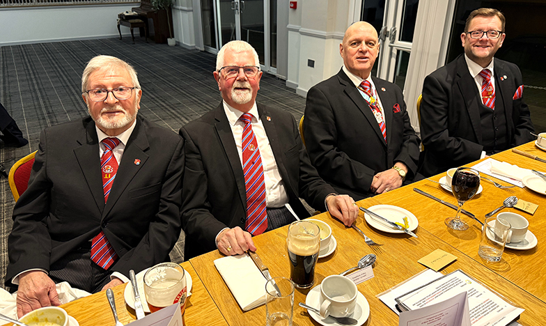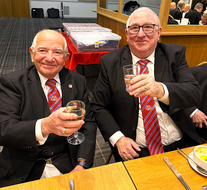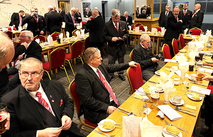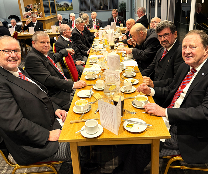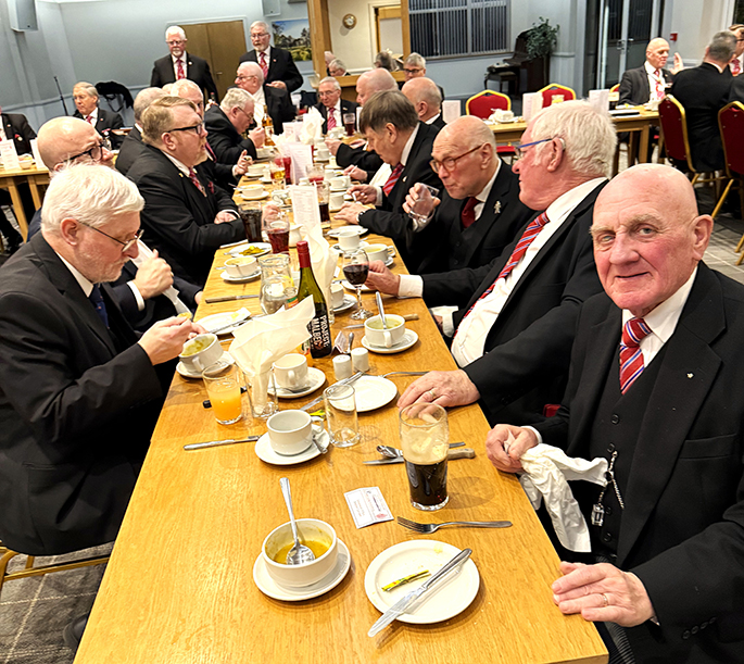 On closing everyone made their way downstairs to the dining room which was laid out in fine style for the Festive Board, once glasses were charged an excellent meal was served by the very efficient and friendly staff.  The usual toasts and responses followed, all of which were well received, and of course a large raffle as is usual for Charity.