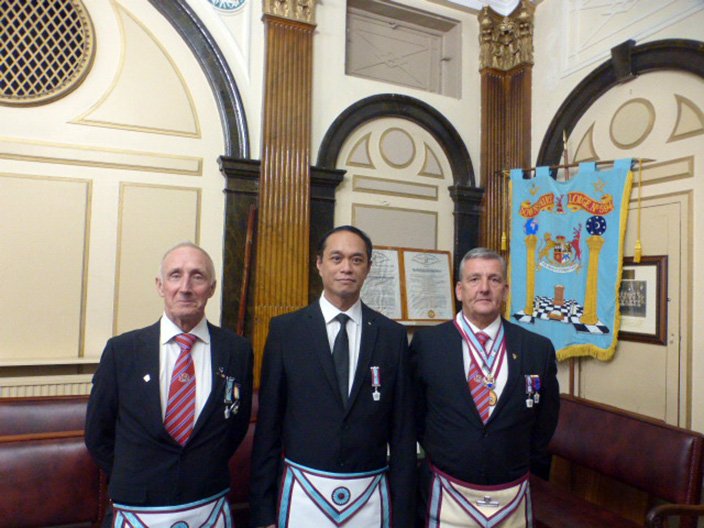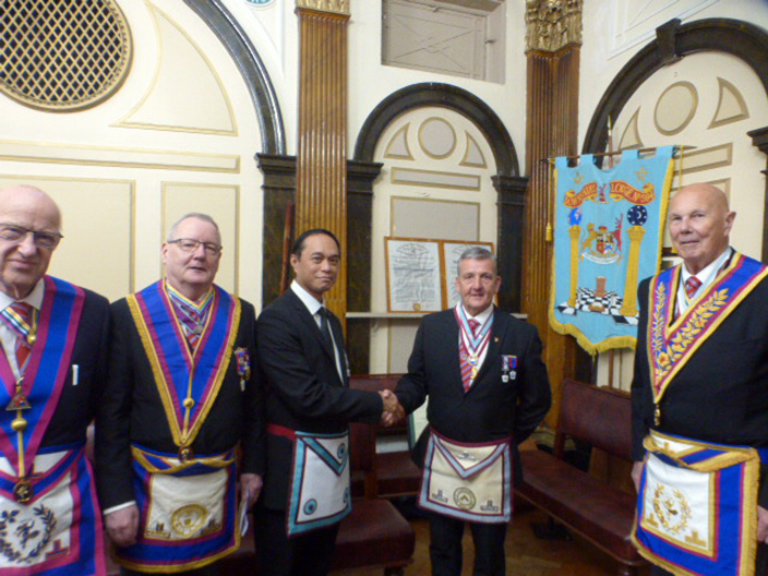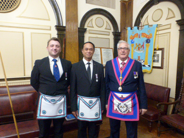 WBro Gaskell was ably assisted by WBro Eric Poole, acting as the Senior Deacon at short notice and WBro Dave Richards acting as Chaplain at even shorter notice. At the end of the ceremony Bro Myfran Anduyan, was welcomed into West Lancs 65 by the Worshipful Master and into the Mark Degree by the PGM’s special rep for the Liverpool group WBro Steve Walls. | |