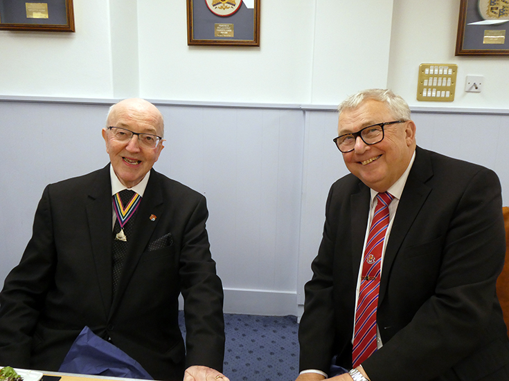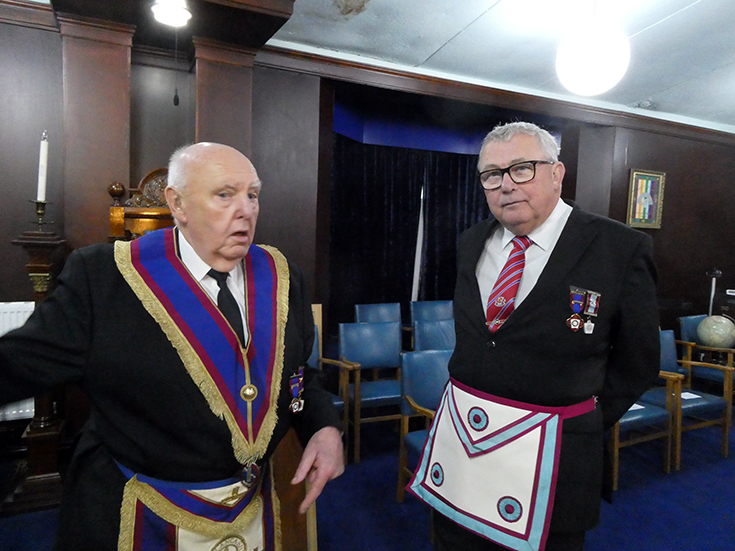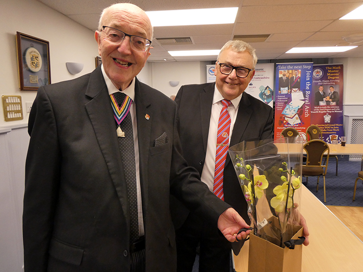 WBro. Alan Holmes Fairhurst GJD, representing the RWPGM, entered the Lodge under the direction of WBro. Dennis Smith the Lodge DC, accompanied by Worshipful, Grand and Provincial Officers. | |