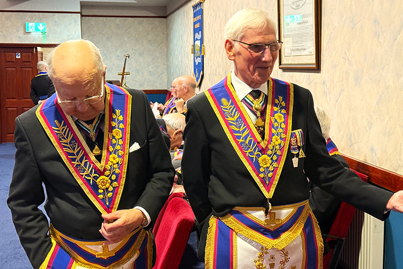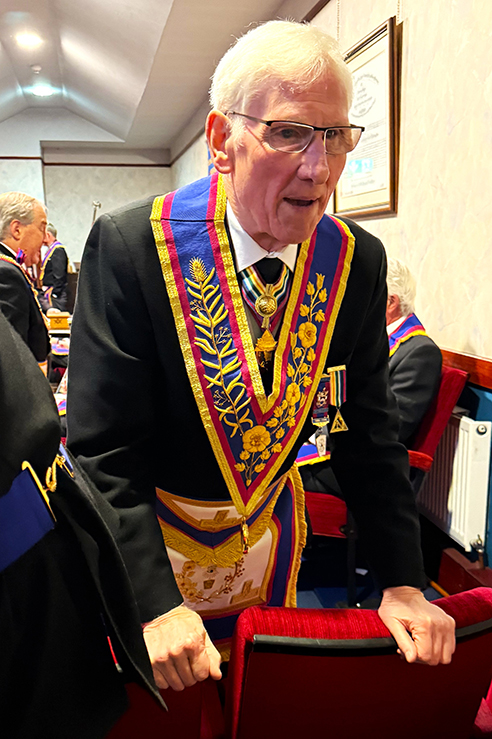 | The RWPGM then had much pleasure in presenting the Treasurer W. Bro. S. L. Walls PGSD with a Diamond Patron collarette in recognition of his contributions to Mark Charities. Several further items were dealt with before the Lodge was closed in due form at 12.40 PM. |