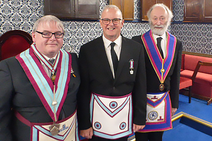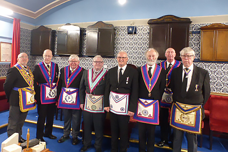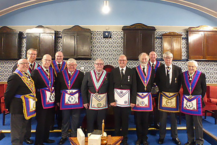 | It had been decided the WBro Ryan would remain in office for a second year and that WBro Graham Sinden would continue as the treasurer. With all the other business complete and the Lodge closed it was time for dinner. In response to the toast to his health Bro Gary Mason thanked everyone for their warm welcome and how much he had enjoyed the ceremony and the evening as a whole. We wish Garry many happy years in the Mark Degree. | |