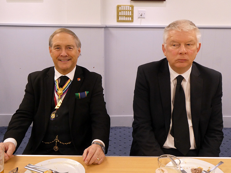 | All the other business being undertaken, which included the proposal for a new member, the Lodge was duly closed and the members and visitors retired to the bar and onto the buffet in the dining room. | |