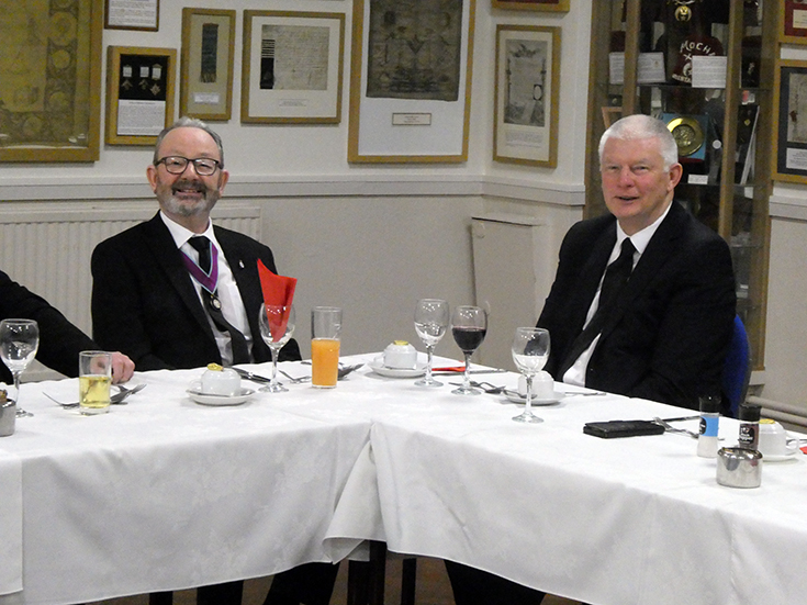 | 25 Brethren, including the RWPGM, plus the candidate for the evening were in attendance. The WM of Imperial Mark; WBro. Clive Gitsham was in attendance. | |