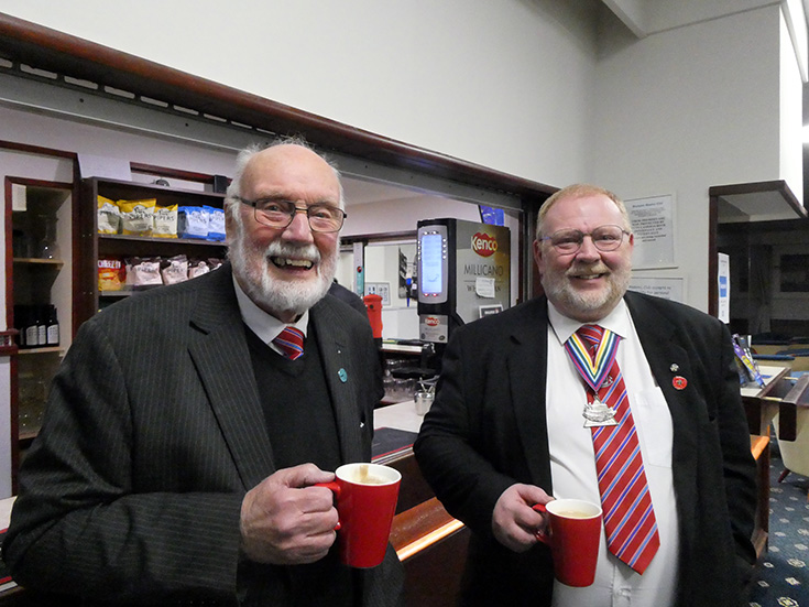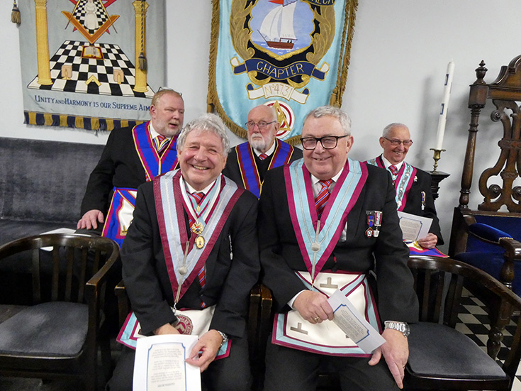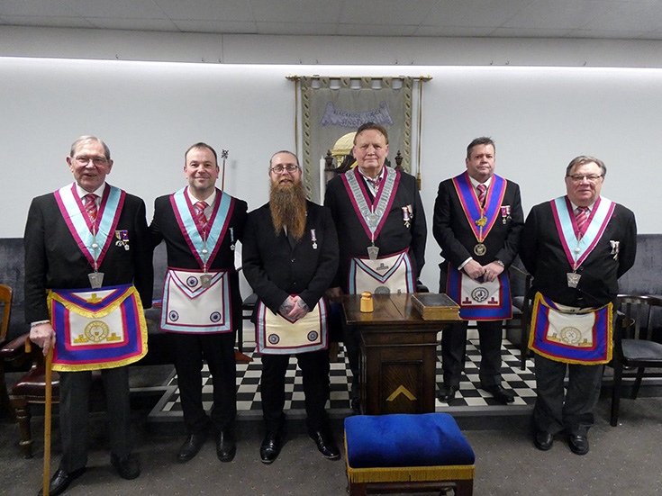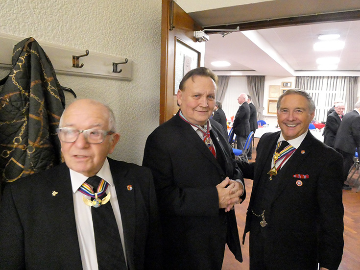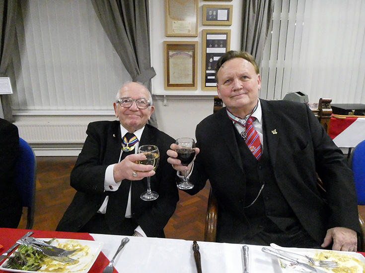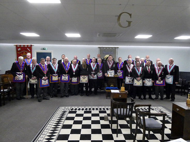 | 29 Brethren, plus the candidate for the evening were in attendance. The WM’s of Imperial Mark; WBro. Clive Gitsham, Wyre Mark: Bro. Jim Gregson and Cleveleys Mark; Bro. Keith Carter were also in attendance. | |