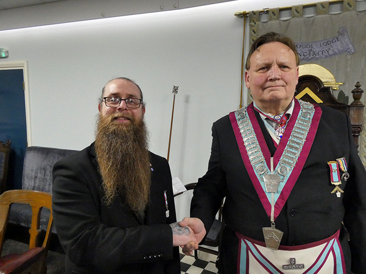 | Also present was VWBro. Giles Berkley PGJO DepPGM and WBro. Chris Walls the Provincial SW and WBro. Steve Walls, PGSD, Special Rep for the Liverpool area. | |