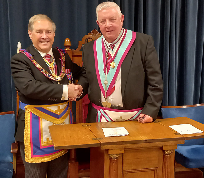 Brother Tighe, now Worshipful Brother Tighe was advanced into Leigh Mark Lodge in 1999. Because of a very busy life,secretary of his Craft lodge,a volunteer with the Samaritans and  a Justice of the Peace, Peter put his Mark Masonry on hold for a few years.