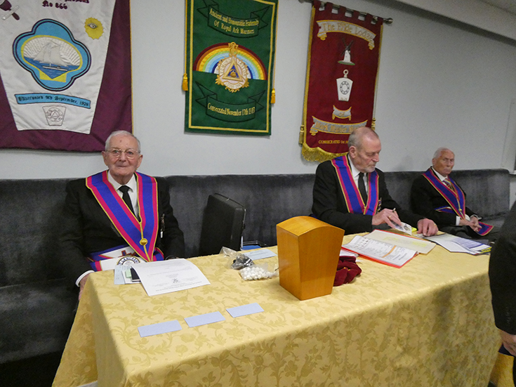 | The Lodge was opened by the WM, WBro. Bill Snell, with 27 members and visitors present, plus the candidate. 5 Brethren present being acting Provincial Officers. WBro. Clive Gitsham WM of Imperial Mark was also present. | |