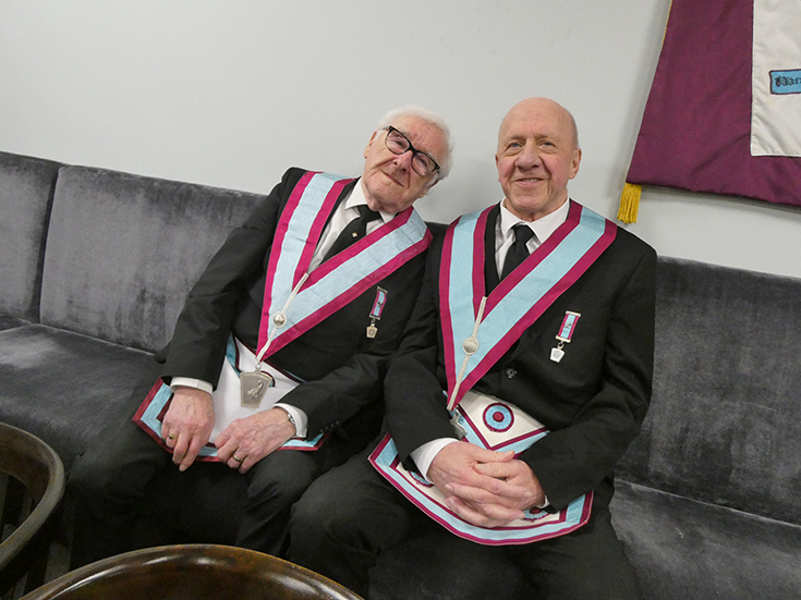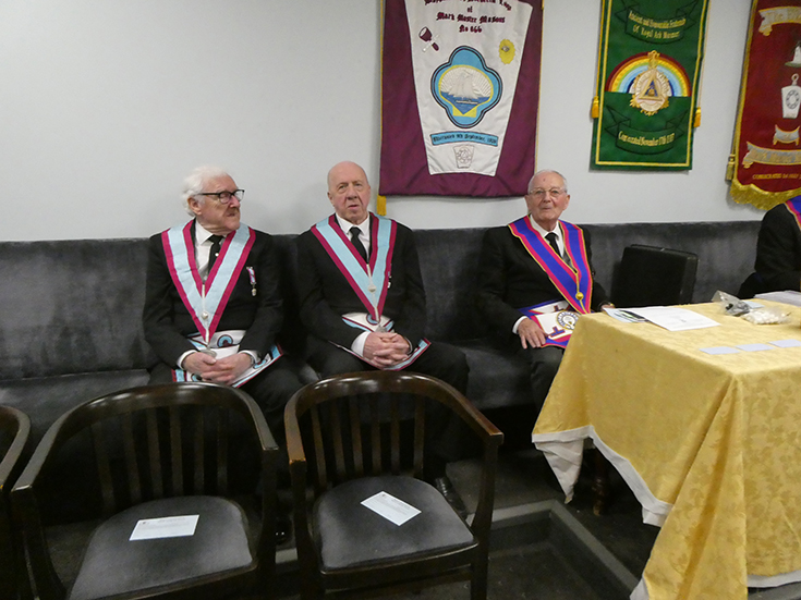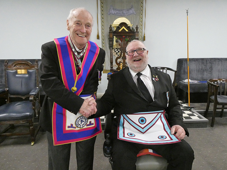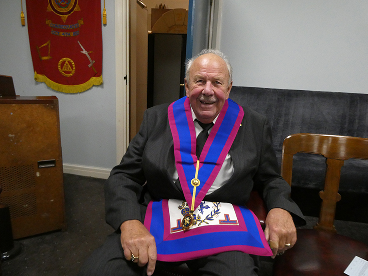 | Bro. Roy Sibley was well and truly advanced into the Mark Degree and from the smile on his face he thoroughly enjoyed it. | |