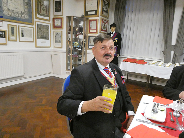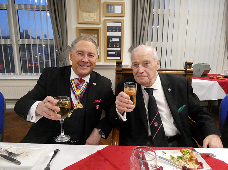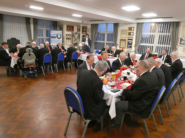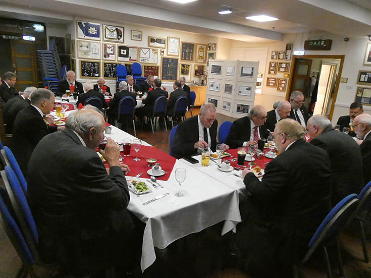 | The Lodge business was completed and was closed by the WM. The Brethren adjourned to the bar and onto the festive board for an excellent meal accompanied by a great atmosphere and craic! | |