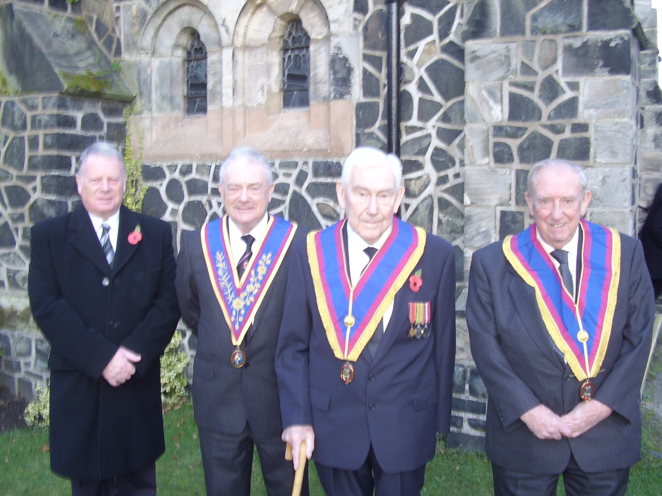 Remembrance Sunday 2011- FormbyFor the first time Mark Masons laid a wreath at the Civic Service at Formby.The wreath layer on this special occasion was W.Bro. Ivor Morgan, one of the few surviving holders of the Burma Star.Ivor signed up in the RAF having just turned 18 following a bomb demolishing part of the street where he lived.At the age of 88 he is still an enthusiastic and regular attendee of his Mark Lodge. |