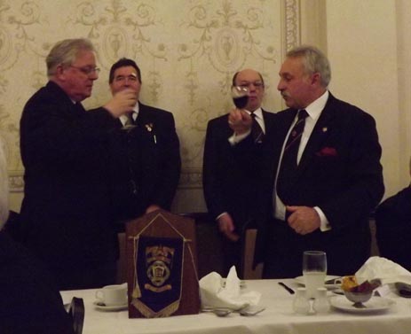Pictured The Worshipful Master takes wine with Provincial Grand Master watched over by Dave Emmerson and Ken Boon who are Provincial DC & Deputy DC in addition to being Lodge DC & ADC