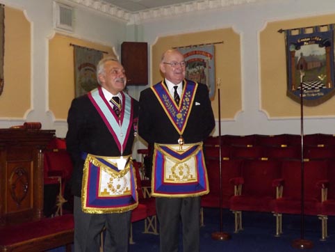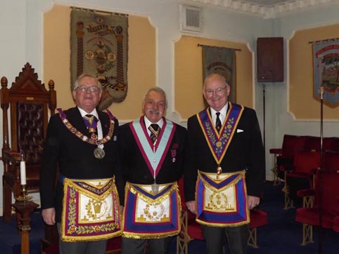 RW Provincial Grand Master, Peter Connolly,              VW Brow Michael Clarke, PGJO, Asst Prov. GM, WM and VW Bro Alex Sharp PGJO.