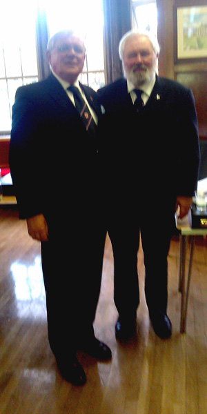 The Grand Secretary RW Bro John Brackley with RW Bro Peter Connolly WL PGM with the new